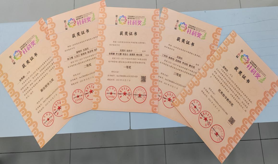 2023年11月12日,历时一年多的社科奖第十四届全国高校市场营销大赛圆满落幕,我校市场营销专业组建的五支参赛队伍,在吴国庆、聂艳玲、王杰芳、赵浩宇四位老师的精心指导下,同学们认真备战,努力拼搏,经过全国复赛与决赛两轮选拔,在全国总决赛中获得一等奖1项、二等奖1项、三等奖2项的优异成绩,我校获“优秀组织奖”,聂艳玲老师获“优秀指导教师奖”,徐霄鹏同学荣获“最佳领导力奖”。