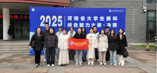 2025年11月15日,河南省首届大学生商科综合能力大赛在河南财经政法大学顺利举行,吸引了来自河南大学、河南师范大学、河南工业大学、河南理工大学等全省18所本科高校的56支队伍齐聚于此巅峰对决。我校国际经济与贸易专业2023级学生杨金鑫、陈艳艳、刘家慧组成的YCL队以小组成绩第一的佳绩摘得大赛一等奖桂冠。