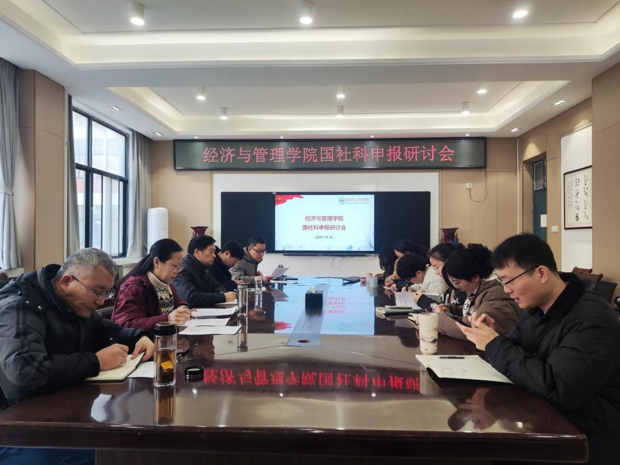 12月26日上午,我院于10号楼202会议室召开2026年度国家基金项目申报研讨会。会议由执行院长崔鸽主持,学院党委书记何二毛、副院长陈军民以及14位项目申报人参加了此次会议。