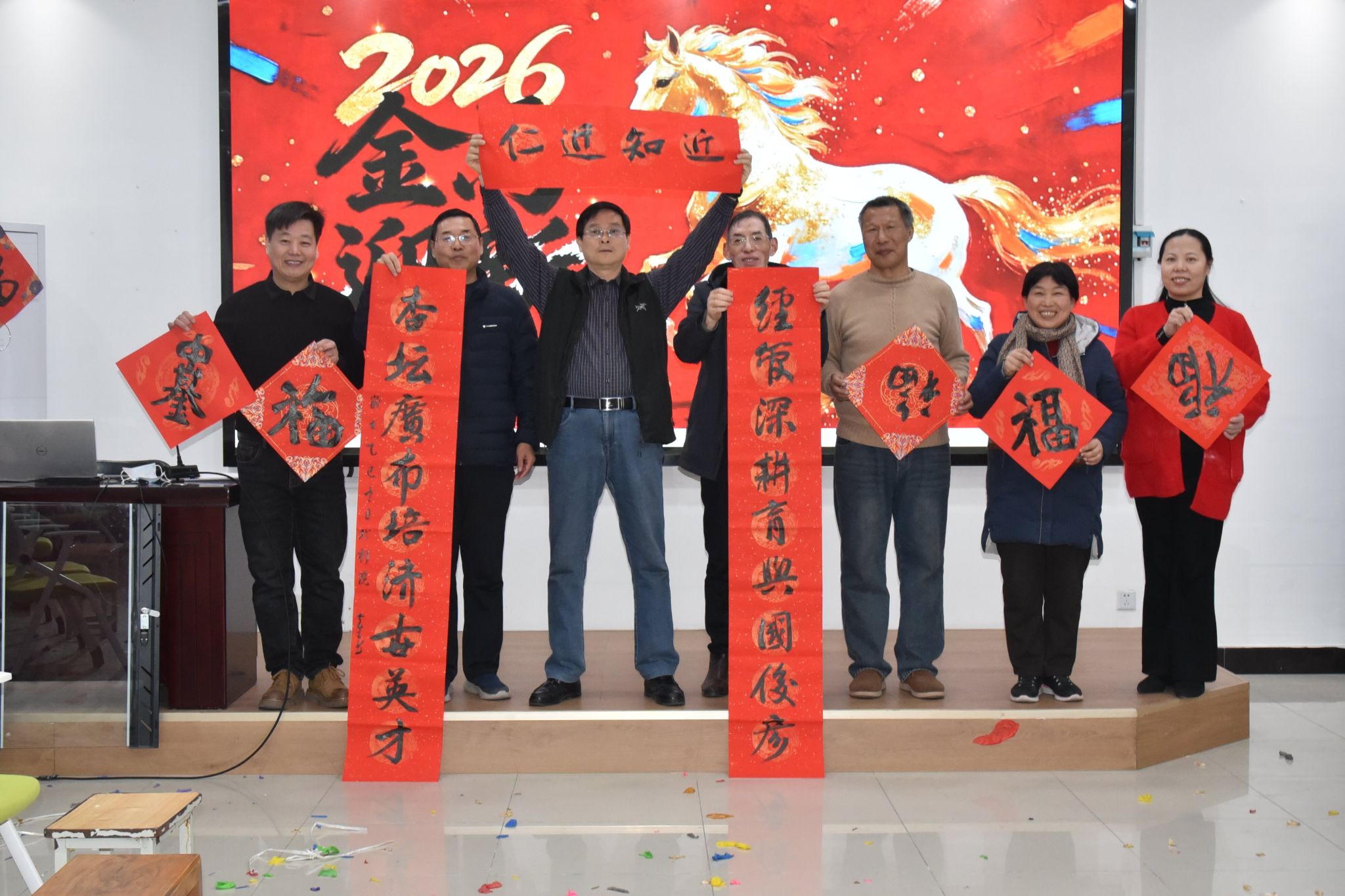 活动还特别设置了送春联活动,邀请精通书法的老师和同学们现场挥毫。红纸铺展,一副副笔力遒劲的春联和充满神韵的“福”字在师生笔下诞生,将中华优秀传统文化与新春祝福完美融合,为活动现场增添了浓厚的文化气息和节日氛围。