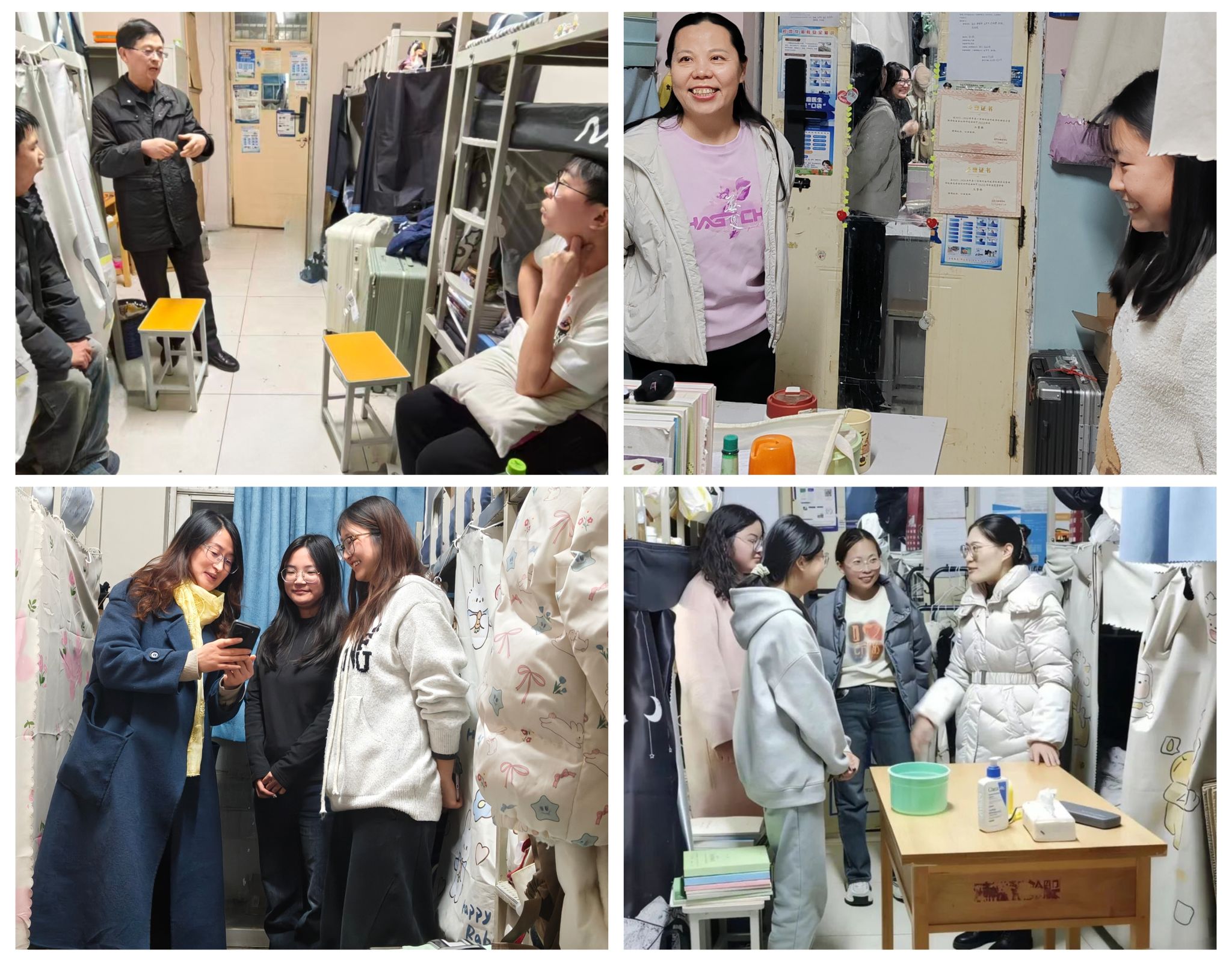 走访中,老师们与学生亲切交流,了解学生思想状况和生活动态,围绕宿舍关系、学业表现、成长规划等话题展开讨论,勉励同学们尽快切换状态,以饱满的热情投入到新学期的学习生活中。老师们还仔细查看了宿舍设施及安全情况,叮嘱同学们增强安全防范意识,注意用电安全、保持宿舍卫生,防范电信诈骗,共同营造文明和谐的宿舍环境。