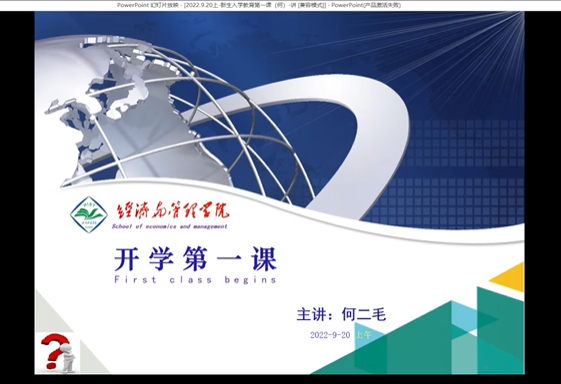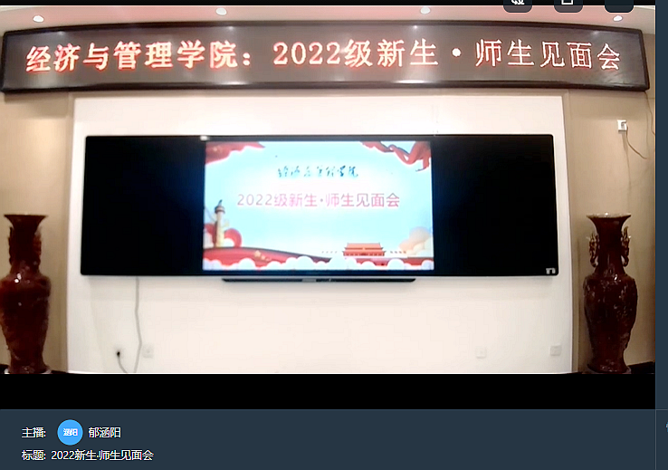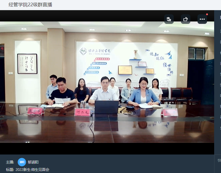 9月21日上午,经济与管理学院通过线上线下相结合的方式举办2022级新生师生见面会。学院党委书记何二毛、副书记吴丹,副院长张宏军,全体专兼职辅导员及2022级新生参加见面会,会议由吴丹主持。